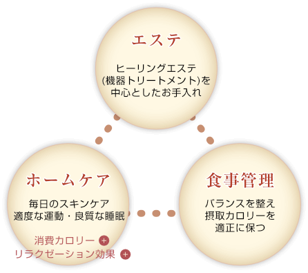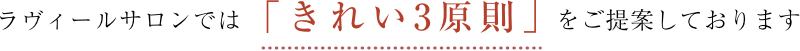 体験しやすいお試し価格 ラヴィールサロンでは、「エステ」「ホームケア」「食事管理」の3原則を提案しています。この3原則の実施により、美しく健康でスリムなボディ、美肌づくりを可能にします。 ※お試しエステは、各メニューお一人様一回までとさせていただきます。 体験しやすいお試し価格 継続しやすい通常価格を設定し、さらにお試しエステはすべての通常価格から半額以下に設定しています。 ~ お試しエステ ~ 選べるお試しボディ 詳しくはこちら >> お試しスリミング 詳しくはこちら >> 選べるお試しフェイシャル 詳しくはこちら >> お悩み解決!3ステップエステ 詳しくはこちら >> 品質と安心 選べるお試しボディ 選べるお試しスリミング 選べるお試しフェイシャル お悩み解決!3ステップエステ 経験豊富なスタッフが丁寧にカウンセリングを行い、施術効果を最大限に引き出します。また望まれない施術の勧誘を行うこともありません。お客様が安心できる空間づくりを行っています。 ~ エステの流れ ~ 1.カウンセリングお悩みや理想、目標を共有し、お客様に合ったエステのカウンセリングを行います。知識と経験豊富なスタッフが丁寧にカウンセリングを行いますので、初めての方もご安心いただきながら、このあと行うエステをご期待いただけます。 2.ボディチェックお着替えして、実際にお身体をチェックさせていただきます。更に深くお客様のお悩みに寄り添います。 3.施術超音波、中周波、低周波の機器を使いながら頑固なセルライトや脂肪にアタック。ハンドならではの技術も加え、細部までしっかりとボディトリートメントを行います。 4.パウダールームでメイク直しラヴィールで使用しているメイクコスメをご自由にご利用いただき、エステ後にお出かけされる方もばっちりご準備いただけます。 5.アフターカウンセリングエステ直後のお身体の状態をチェックしながら、自宅ケアやアフターケアのアドバイスをさせていただきます。