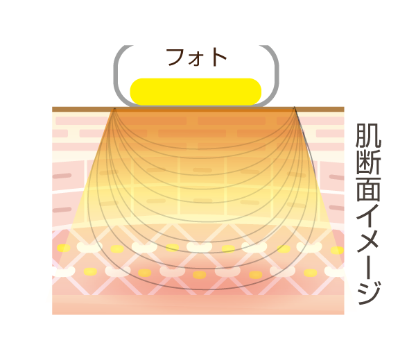 フォトには光エネルギーで艶々としたハリを肌によみがえらせる効果や、脂肪にアプローチする作用があります。また、フォト施術を行うことによって、超音波の効果UPも期待できます。